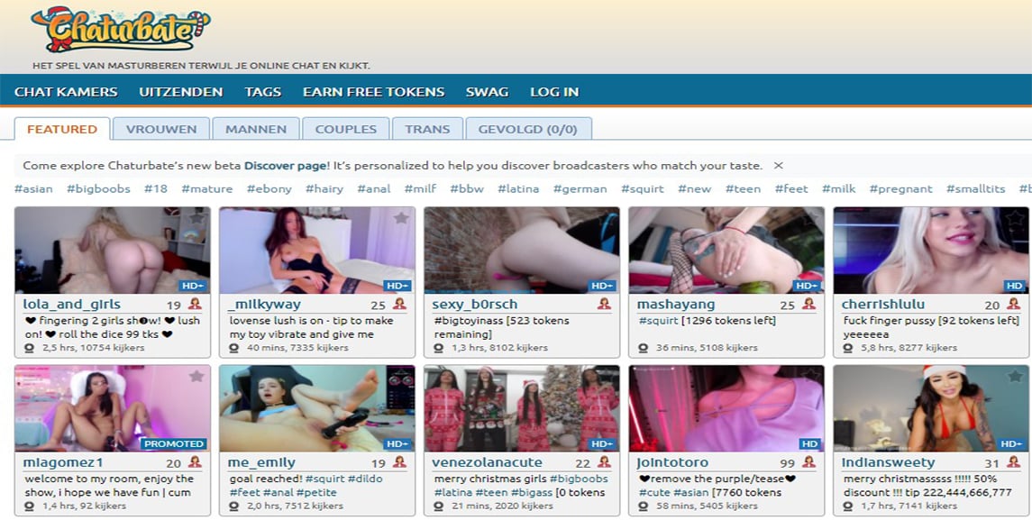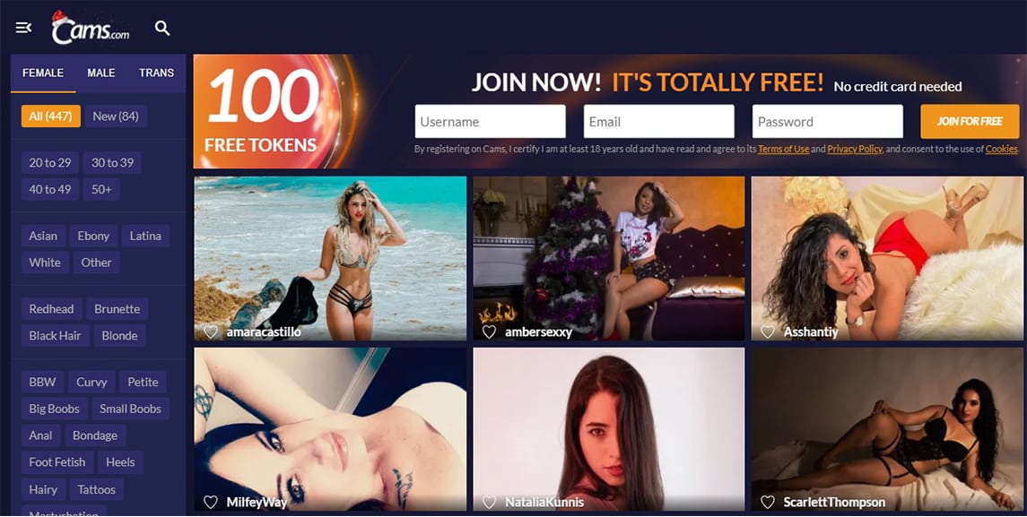 Op Cams.com kan je helemaal gratis naar alle cams kijken. Bij de miniaturen zie je meteen al de dames, de naam en ook of dat ze bijvoorbeeld privé bezig zijn, een bepaald doel hebben of naakt zijn. Aan de linkerkant van je scherm vind je ontzettend veel categorieën om uit te kiezen. Zo kan je heel makkelijk en snel de voor jou geilste webcam chick vinden. Om te kunnen chatten dien je wel te registreren. Dit is helemaal gratis. En ook hier geldt, dat als je een speciale behandeling of persoonlijke sessies wil, dat je dan met tokens deze aandacht kan krijgen.